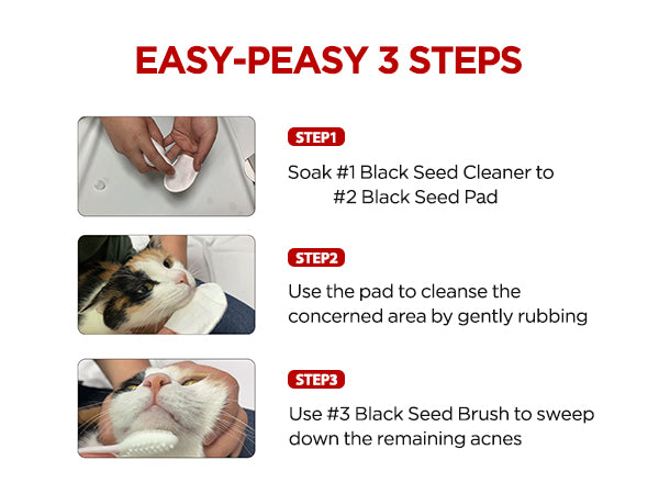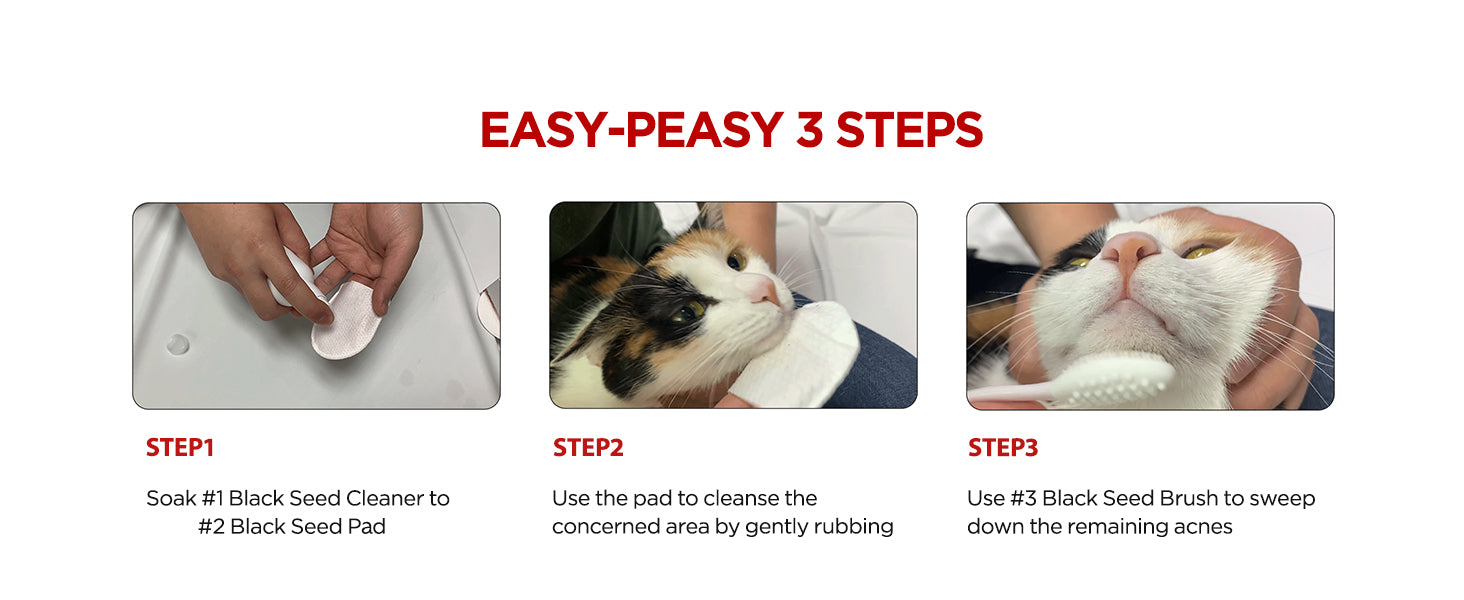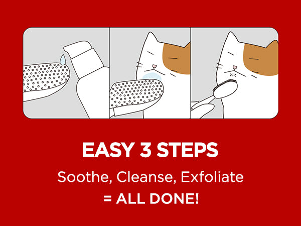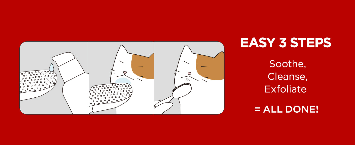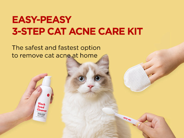 Simple 3-step kit with cleaner, pad, and brush for cat chin acne. Hypoallergenic, lick-safe, and vet-recommended.