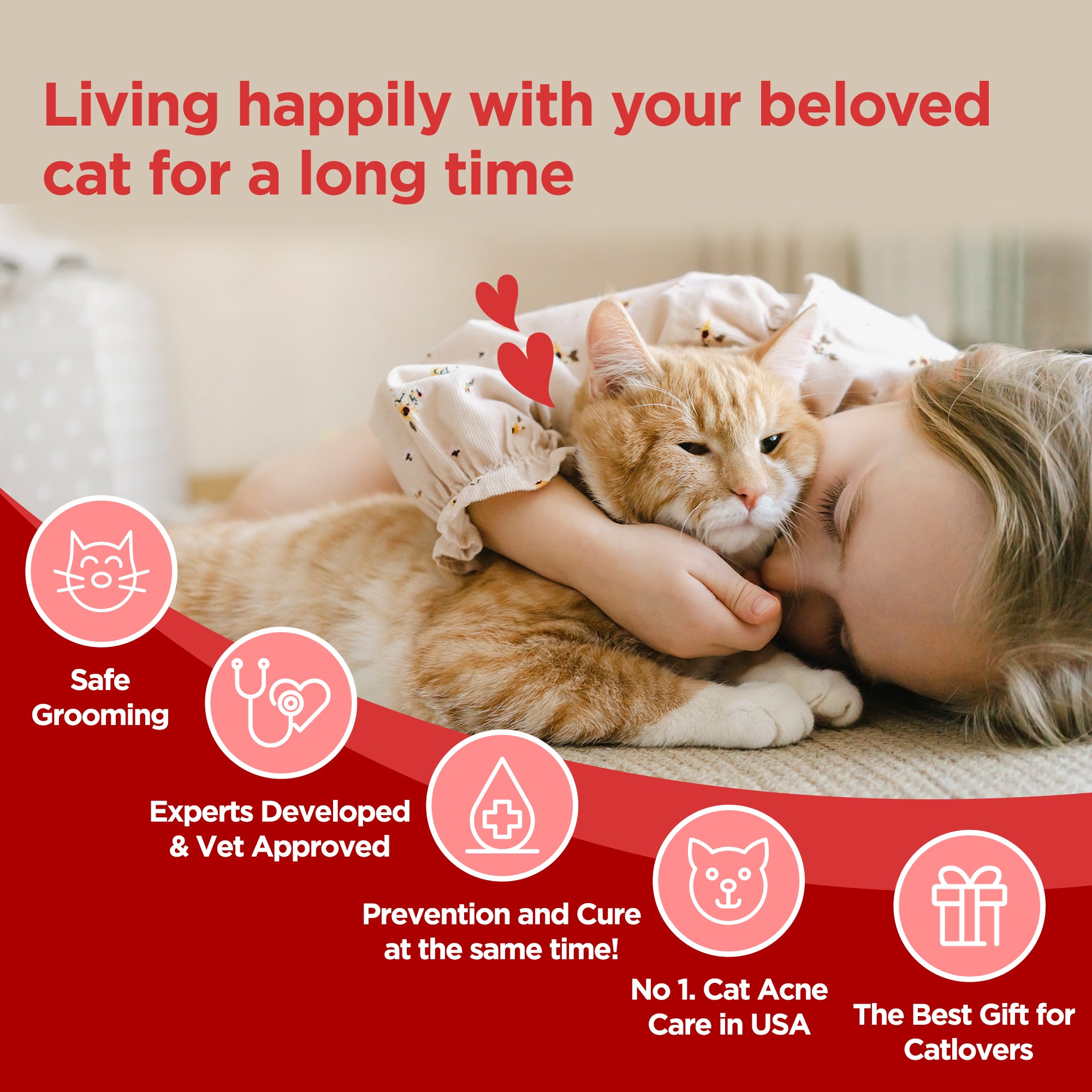 Gentle liquid cleanser for cat acne. Natural, EWG-approved ingredients. Safe if licked. Use with pad and brush to prevent breakouts.