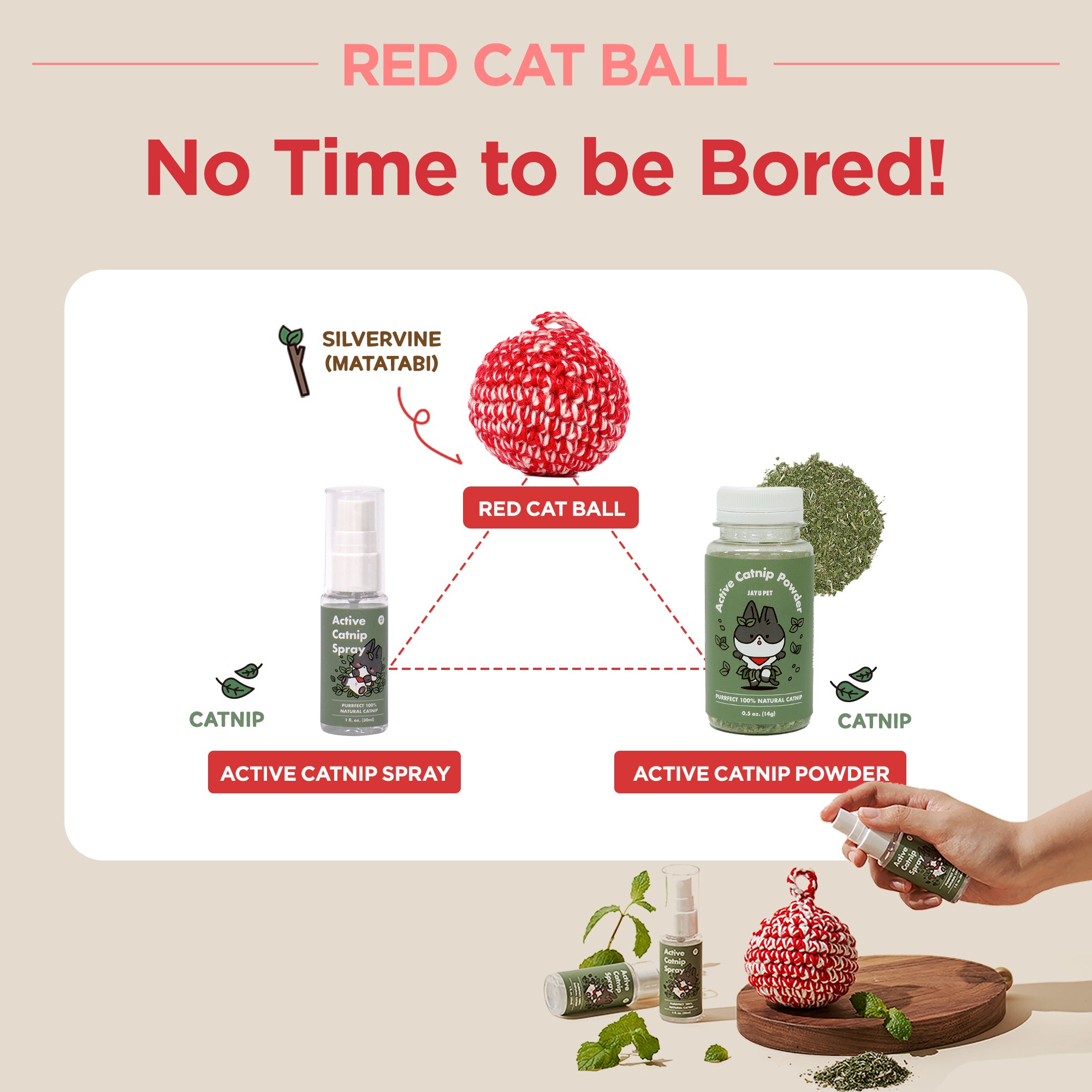 Soft bell sound and silvervine scent encourage play while reducing stress