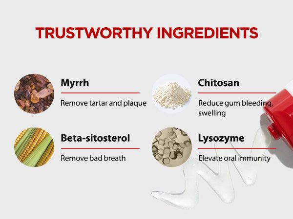 Glycerin, Water, Commiphora Myrrhya Resin Extract, Cellulose Gum, Butylene Glycol, Fragrance, Zea Mays (Corn) oil Unsaponifiables, Glycine, Potassium Sorbate, 1,2-Hexanediol, Mentga Piperita (Peppermint) Leaf Extract, Beta-Sitosterol, Citric Acid, Dextranase, Lactoferrin, Lysozyme, Honey Extract, Aloe Barbadensis Leaf Extract, Rosmarinus Officinalis (Rosemary) Extract, Tocopheryl Acetate, Chitosan, Ethylhexylglycerin
