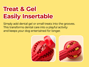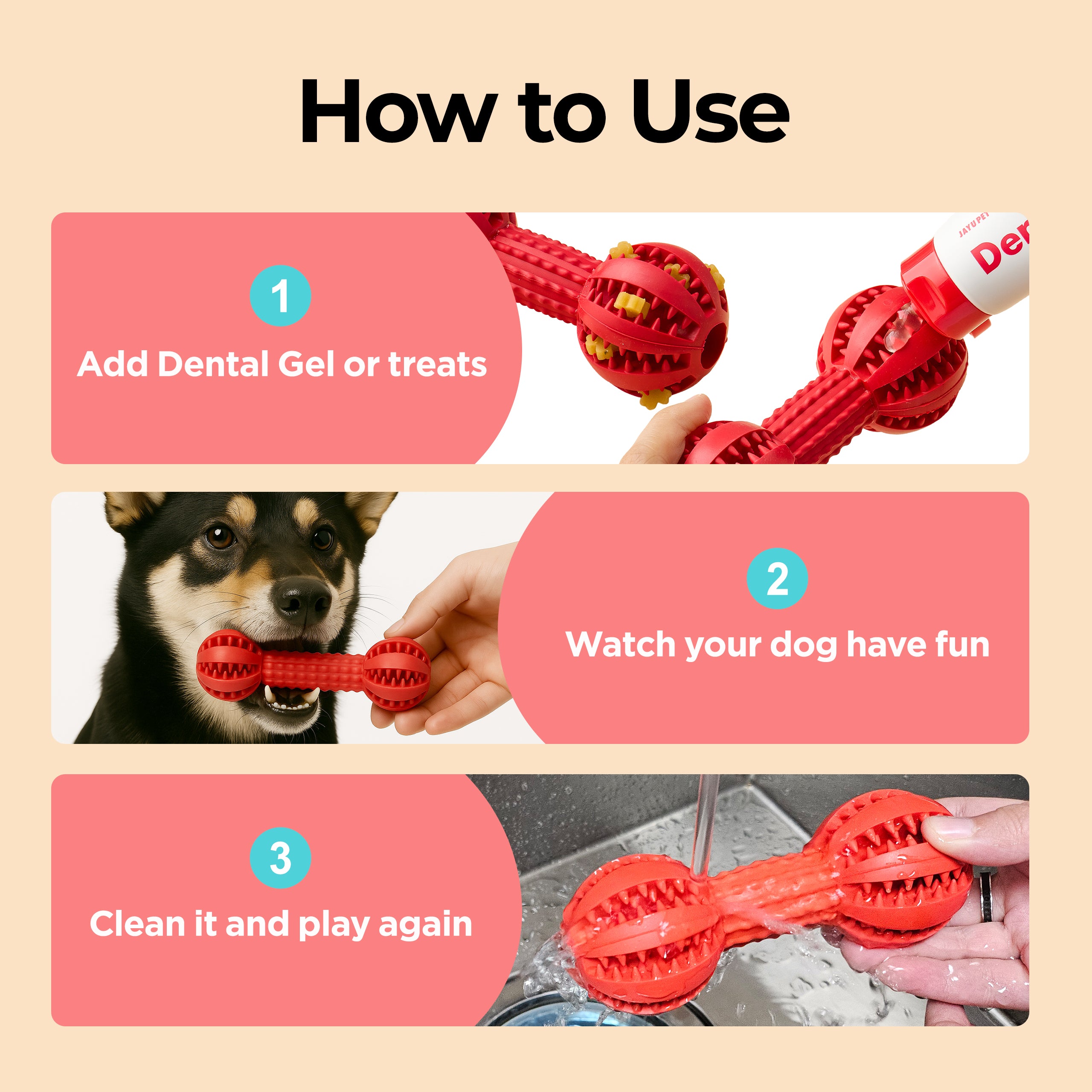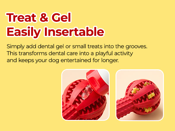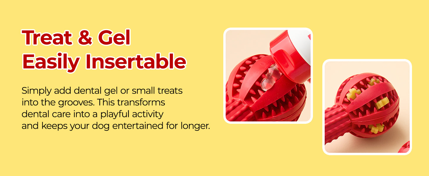 For better dental care, apply dog-safe dental gel or fill with treats before use