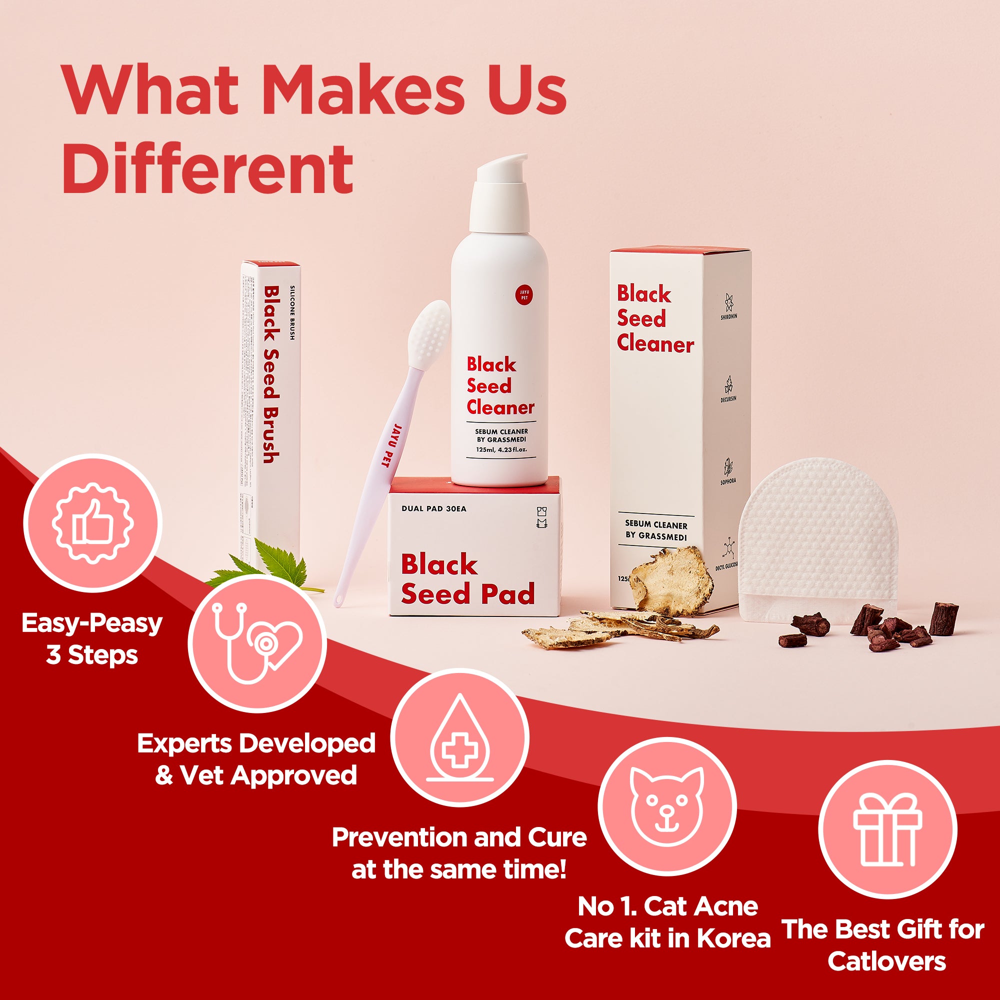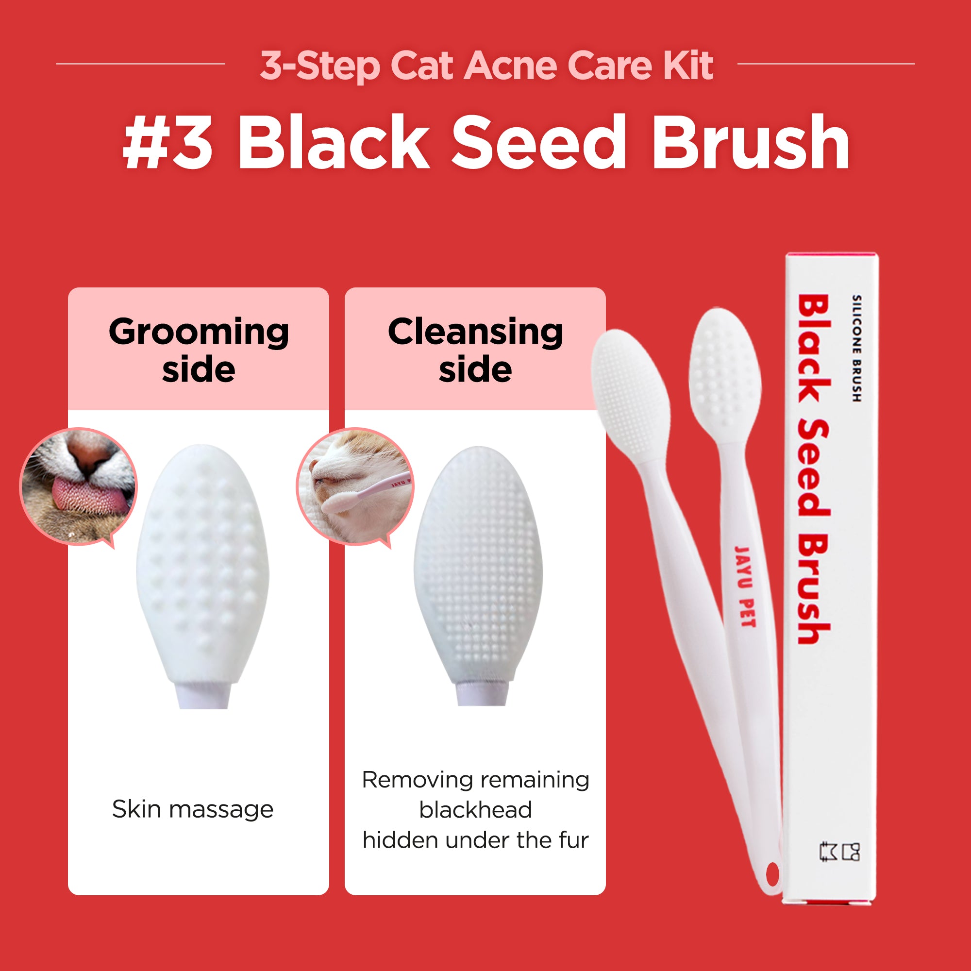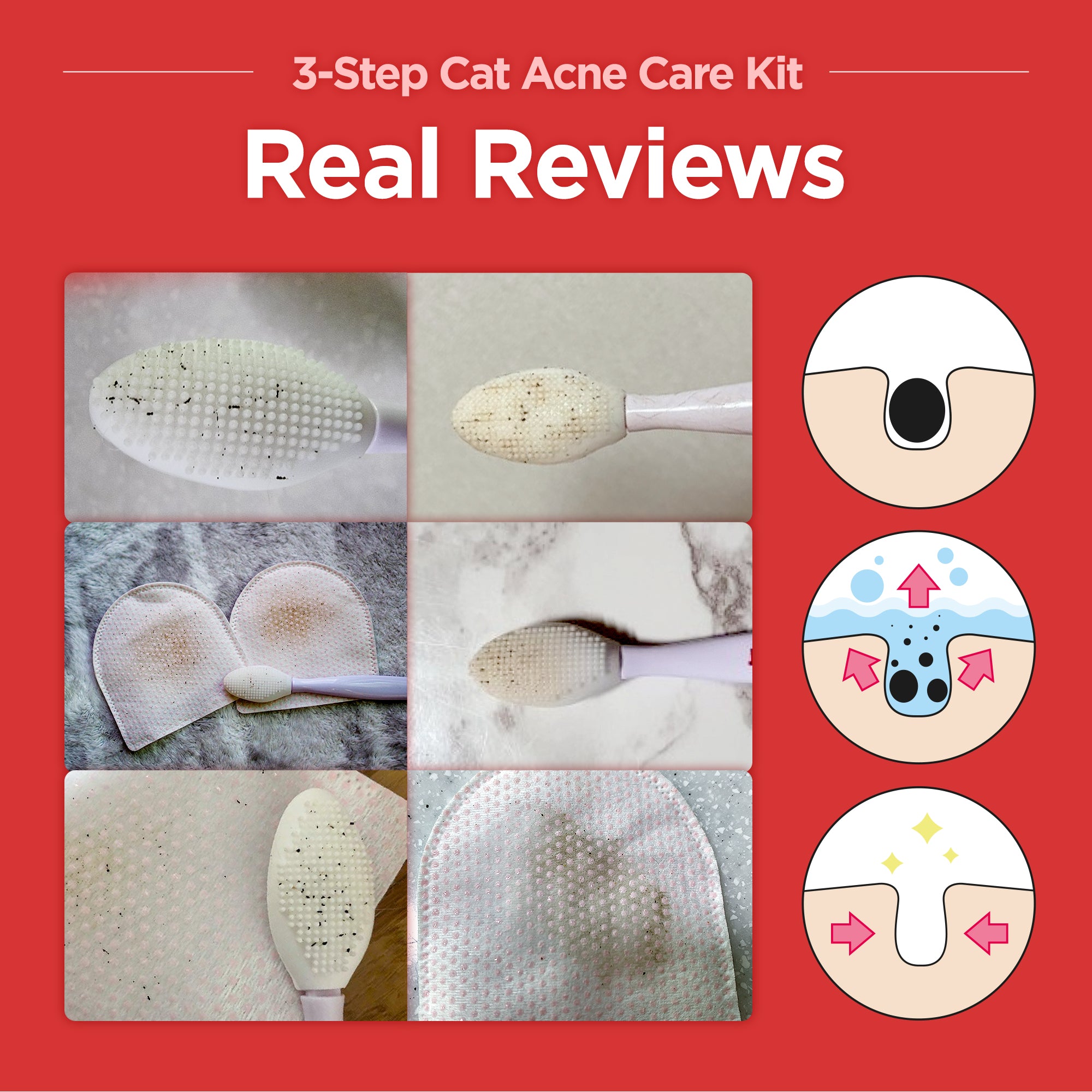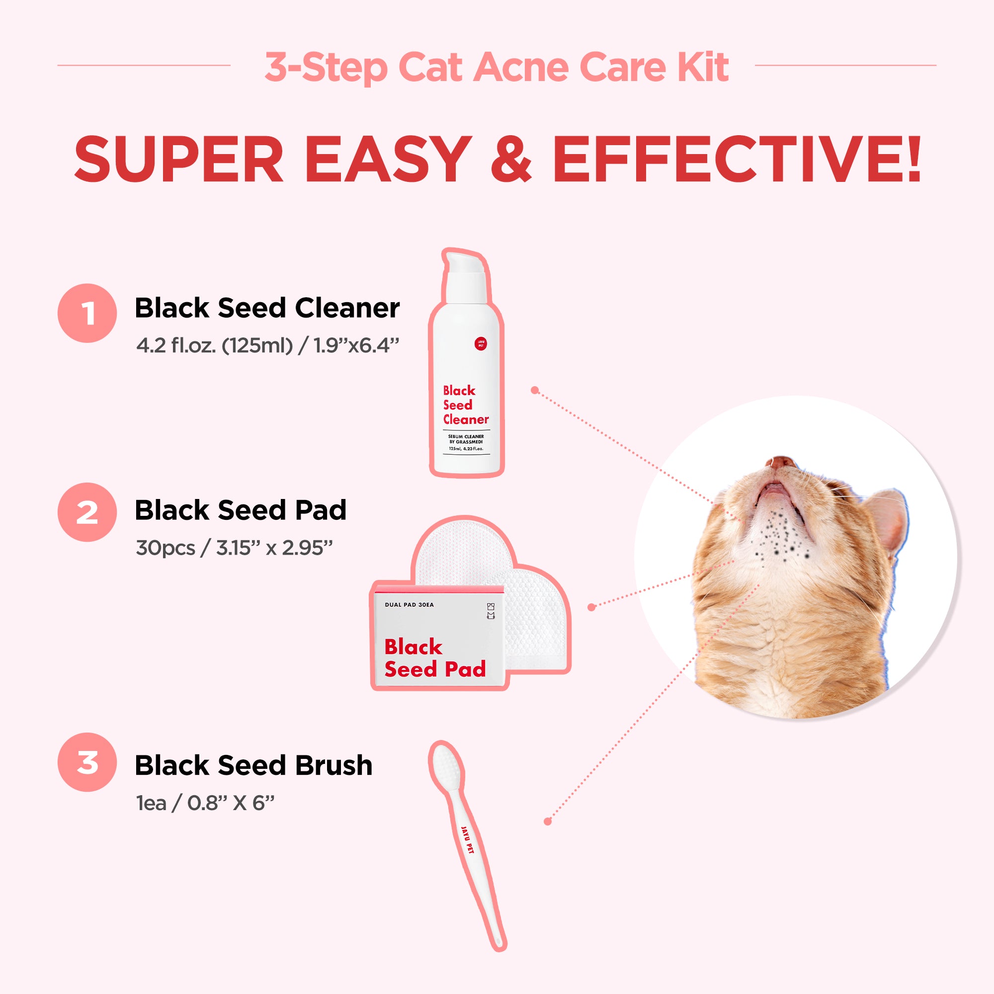 Simple 3-step kit with cleaner, pad, and brush for cat chin acne. Hypoallergenic, lick-safe, and vet-recommended.