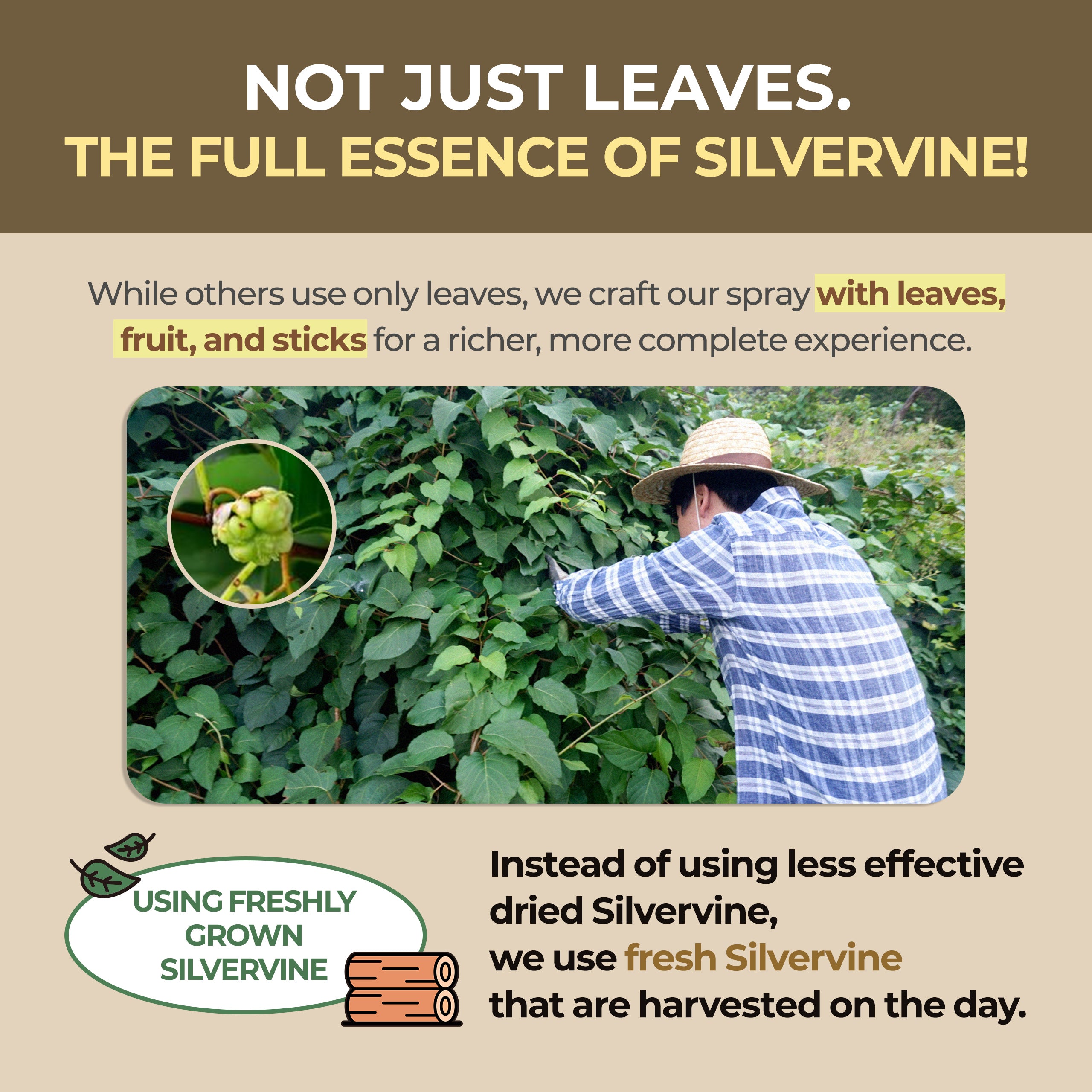 100% organic silvervine spray distilled fresh to preserve potency. Encourages play and relieves anxiety. Spray on toys or scratchers.