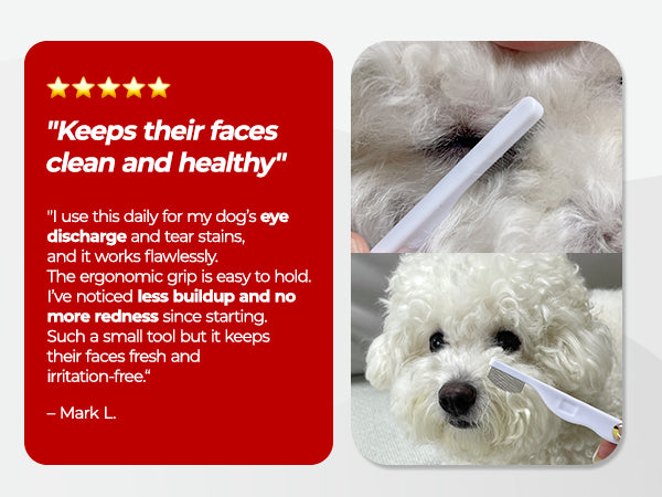 • Ultra-Fine Teeth: Gently remove tear stains and eye debris without irritation